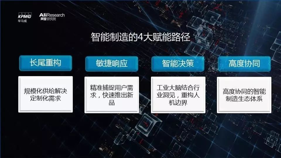报告通过深入研究,并结合淘工厂、恒逸石化、中信云等企业案例,总结了智能制造的四条赋能路径及其为企业带来的巨大价值:1.规模化供给解决定制化需求,实现长尾重构;2.精准捕捉用户需求,快速推出新品,实现敏捷响应;3.工业大脑结合行业洞见,重构人机边界,实现智能决策;4.工业互联、云中台助力大型集团构建高度协同的智能制造生态体系。