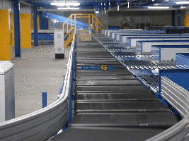 ky开元智能为该客户设计实施的此输送分拣项目采用其自有的核心设备交叉带分拣机,能够在-25-40℃的环境下平稳运行,最大运行速度可达2.5米/秒。