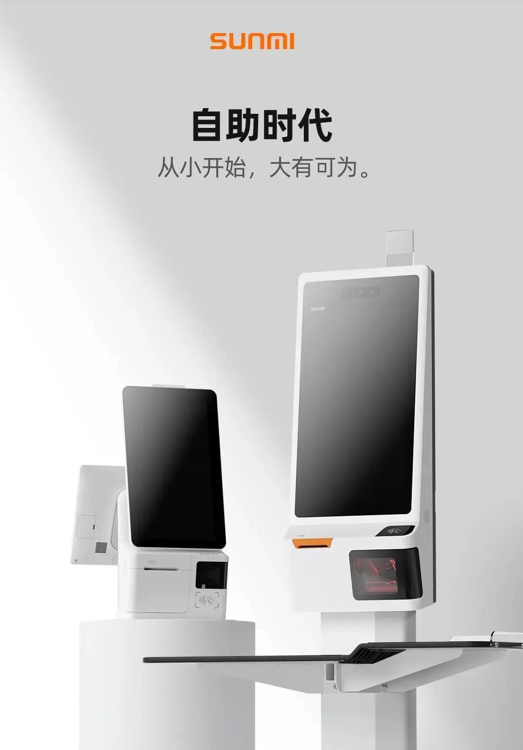 4月22日,知名物联网科技公司商米联合新零售企业盒马共同发布了两款自助收银设备,K2、K2 MINI(ReX 飞鼠),正式开启了“全民自助时代”。商米联合盒马推出的K2 MINI(ReX飞鼠)是一款只有A4纸占地面积、可以直接摆在台面上使用的自助设备。通白机身极具美感能轻松融入各种环境,⼀体化设计,两种屏幕任选,适合⼩型店铺;从配置上,K2 MINI采用的日本精工打印机芯,内置3D结构光摄像头,⽀持刷脸⽀付。
