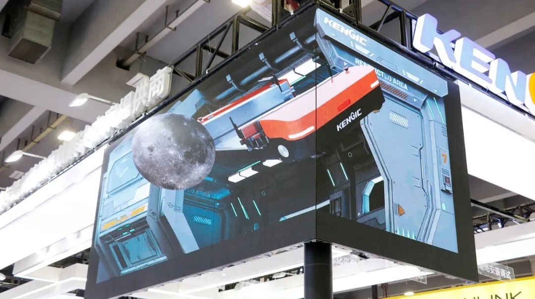 远观展位,超酷炫裸眼3D屏抢占视线,我们把核心设备送上“太空舱”,月球抓取、礼物派送样样行。