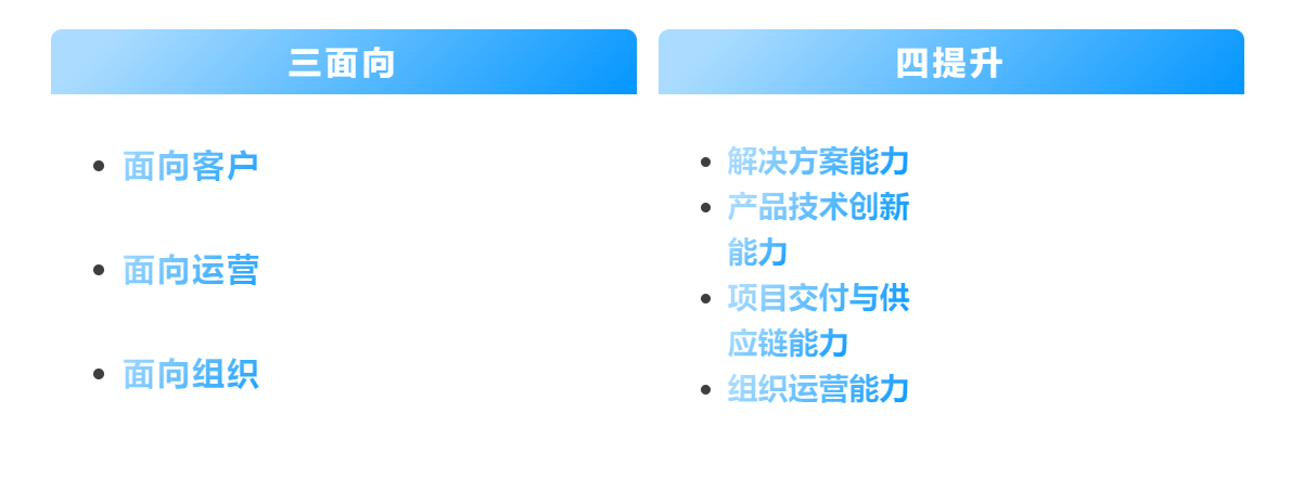 汇报从LTC总体业务蓝图和核心能力两大方面进行了说明,强调了公司未来三年的数字化转型总体目标与核心能力,我们将坚定不移地以标准化、模块化、参数化的产品体系建设为基础,夯实产品和技术的迭代和创新能力,赋能解决方案快速响应能力,从而实现面向客户需求的大规模定制化交付业务模式。